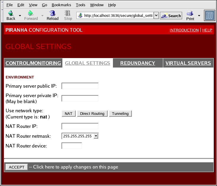 Prev | Chapter 10. Configuring the LVS Routers with Piranha Configuration Tool | Next |